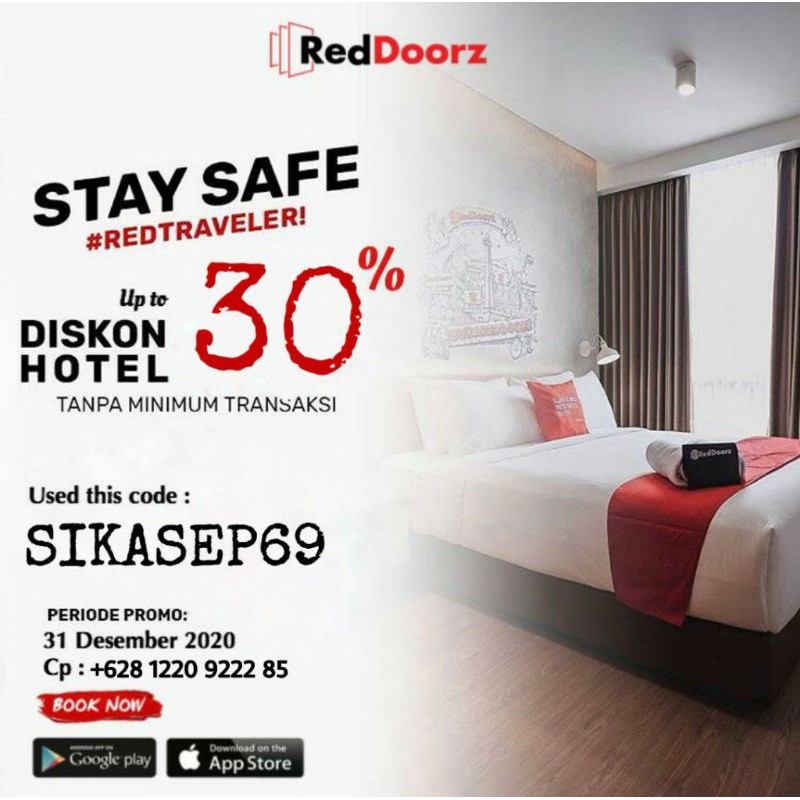 18 - 24 Agt 2021. Promo ini berlaku untuk seluruh pengguna Reddoorz. Hanya berlaku bagi kamu yang telah update aplikasi RedDoorz terbaru khusus Android.